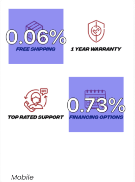 We also noticed that the icons on the home page for shipping, warranty and financing were receiving tons of dead clicks (when visitors click on something that is not clickable) indicating customers are looking for more information regarding shipping, warranty financing.